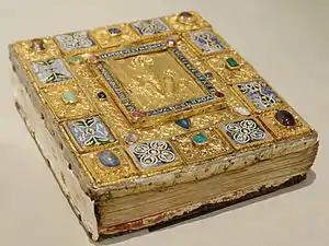 Le manuscrit, composé de 180 folios, a été rédigé par un scribe allemand du Xe ou du XIe siècle, en semi-onciale, avec les initiales et les titres en rouge. Sa remarquable reliure est faite de panneaux de bois de hêtre recouverts de plaques d'or, enrichies d'émaux cloisonnés et de gemmes taillées en cabochon. L’évangéliaire était probablement destiné à la basilique de Valère, à Sion, en Valais ; il s'y trouvait au XVIIe siècle.