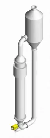 Dans ce modèle, la solution faible est alimentée à l'échangeur et la séparation des phases liquide et gazeuse est faite soit dans le même échangeur, soit dans une chambre séparée ; la phase liquide est ensuite immédiatement extraite du circuit. On obtient ainsi un temps de contact avec les surfaces à haute température le plus réduit.