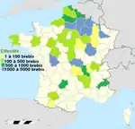Son effectif en France est d'environ 250 000 brebis (entre 200 000 et 300 000) en 2005[4] auxquelles on peut ajouter 100 000 à 150 000 brebis issues de croisement de béliers Île-de-France avec des brebis d'autres races. Cette race est élevée surtout dans le nord et le centre de la France : Picardie, Champagne-Ardenne, Bourgogne et Centre. La carte ci-jointe livre la répartition des brebis soumises au contrôle des performances dans les élevages de sélection. Elle a fait l'objet d'exportation dans de nombreux pays depuis la fin de la Seconde Guerre mondiale[5], l'Île-de-France est ainsi présente dans 32 pays à travers le monde.