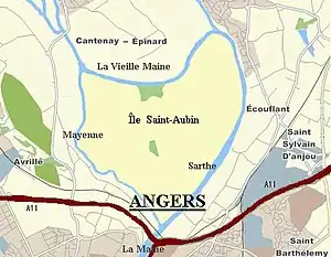 L'île Saint-Aubin est une île formée par la Vieille Maine, la Sarthe et la Mayenne, située au nord d'Angers, dans les Basses vallées angevines, dont l'île représente 1/10e de la superficie.
