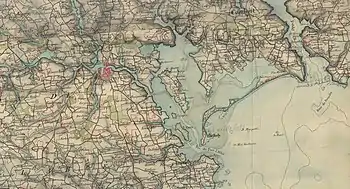 « Du temps de Beautemps-Beaupré, en 1818, l'isthme qui reliait Tudy à la côte, et qui n'avait par endroits que 30 mètres de largeur, était interrompu à mi-distance entre Tudy et la pointe de Combrit par une petite ouverture par laquelle la lagune intérieure communiquait avec la mer dans les grandes marées, de sorte que Tudy pouvait encore à la rigueur s'appeler une île. Cette ouverture n'existait plus lors du levé de 1903, et la dune littorale s'étendait sans interruption de Tudy à la pointe de Combrit[3]. »