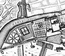 Au Moyen Âge et au début de l'ère moderne, la partie avale de l'île fluviale, au nord de la ville de Cölln, n'est qu'un terrain marécageux. À la suite de la construction du château de Berlin à partir du XVe siècle, le canal du Kupfergraben est creusé pour le drainage de zones humides aménagées en jardin potager.