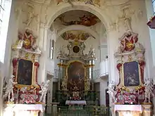 L’église Sainte-Marie située à côté du château sur la côte Sud-est de l’île, bâtie de 1732 à 1739, est la première des églises construite par Bagnato. L’église du château est une salle d’église rectangulaire de 20 mètres le long et 9.5 mètres de large avec un chœur en arc de cercle. L’église comporte un majestueux orgue et des sculptures de Joseph Anton Feuchtmayer (1696-1770). Franz Joseph Spiegler (1691-1757) ajouta en 1737/1738 les fresques et les peintures des voutes. Johann Baptist Babel (1716-1799) ajouta une madone noire aux sculptures. Les deux autels sont ornés de nombreuses sculptures d’anges. L’autel de gauche est couronné par la statue du martyr Sébastien. L’autel principal est mis en valeur par un tableau où figure la Vierge Marie et l’enfant, la sainte famille et l’anabaptiste. Dans la crypte se trouve la tombe de Bagnato. Le grand-duc Dmitry Pavlovitch Romanov (meurtrier de Raspoutine) y est enterré. Cette église est considérée comme le point de départ de l’art baroque en souabe. Elle est fréquemment utilisée pour les mariages.