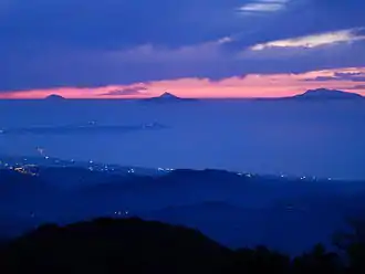 Les îles Éoliennes vues depuis le mont Dinnammare (monts Péloritains de Sicile).