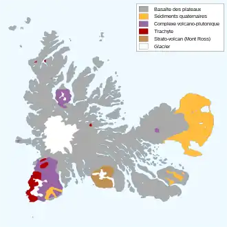 Carte géologique simplifiée de l'archipel Kerguelen.