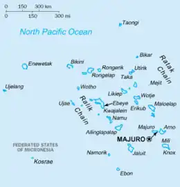 Les Îles Marshall[5] ou les Marshall[5], en forme longue la république des Îles Marshall[5] (en marshallais : Aleōn in M̧ajeļ[5], M̧ajeļ[5] et Aolepān Aorōkin M̧ajeļ[5] ; en anglais : Marshall Islands[5] et Republic of the Marshall Islands[5]), sont un État de Micronésie, en Océanie.