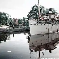 Le transport fluvial dans la ville remonte à plusieurs centaines d'années[32]. La profondeur de la rivière ne permettait pas alors aux bateaux d'aller jusqu'au centre-ville, le port était donc situé plus en aval[32]. En 1888, le niveau du lac Hjälmaren fut baissé, et en même temps, une écluse fut construite, ainsi qu'un canal (le canal d'Örebro), permettant aux navires d'atteindre le centre-ville, où fut construit un nouveau port[32].