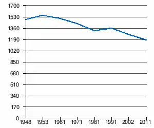 En 2002, l'âge moyen de la population était de 39,2 ans pour les hommes et 42,7 ans pour les femmes[3].