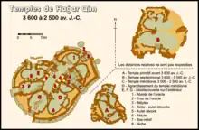 Au centre du site, le mur d'enceinte méridional (environ 35 × 28 m) englobe un temple et une succession d'agrandissements/aménagements sur une période d'au moins cinq siècles.