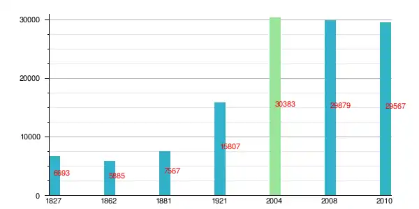 Sa population s'élevait à 30 204 habitants en 2006 repartie sur une superficie de 23,41 kilomètres carrés.