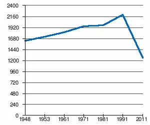| 1991 (recensement) | 4 125 | 32,8 | 8 303 | 66 | 101 | 0,8 | 57 | 0,4 | 12 586 | ||||