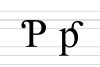Forme de la minuscule avec le crochet au-dessus de la panse du p. | |