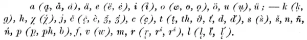 Symboles phonétiques utilisés par Halász en 1891.