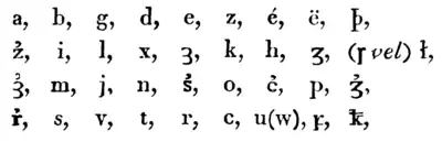 Alphabet proposé pour le géorgien par Rasmus Rask en 1832.
