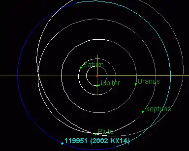 (119951) 2002 KX14 est un objet transneptunien d'environ 500 km de diamètre.