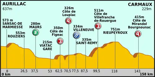 Etape courte et quelque peu accidenté entre la préfecture du Cantal, Aurillac, et la ville de Carmaux (Tarn).