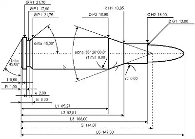 La douille de la cartouche 12,7 × 108 mm a un volume de 22,72 ml.