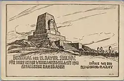 Monument et cimetière militaire allemand après les combats de Noël 1916 sur le Râmnicu Sărat, carte postale allemande.
