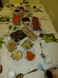 Cette accumulation de douceurs se retrouve chez les juifs sépharades lors du Roch Hachana où se dégustent figues, amandes, raisins et turrado (nougat)[5].