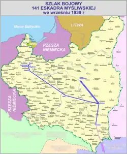 Le est constituée la 123e escadrille de chasse. Le de la même année elle est renommée 115e escadrille de chasse et finalement le elle devient la 141e escadrille de chasse. Équipée d'une dizaine de PZL P.11c elle prend part à la campagne de Pologne au sein de l'Armée Poméranie. Le elle intègre la brigade de poursuite. Après l'invasion soviétique, la 141e tout comme le reste de l'armée de l'air polonaise est évacuée en Roumanie.
