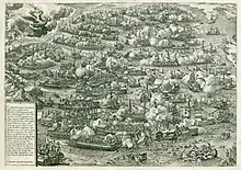 - 7 octobre : bataille de Lépante[24]. les Ottomans d’Ali Pacha sont défaits par la flotte alliée des Vénitiens, des Espagnols et de la papauté dirigée par Don Juan d'Autriche. C'est la fin de la puissance maritime ottomane en Europe. Les provinces se soulèvent mais le calme revient vite et la flotte est reconstituée en quelques mois.