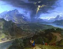 Paysage de montagne avec un éclair, toile de Francisque Millet.