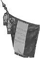 Il porte, cousues en lettres d'or dans ses plis, les inscriptions suivantes[4] :