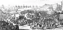 - 28 août : victoire du khan des Dzourgars sur les Khalkhas[12] et conquête de la Mongolie (1688-1690). Galdan, à la tête de 30 000 hommes, marche contre le Touchetou-khan et l’écrase dans la région du lac Ologhoï. Les Khalkhas doivent se réfugier au sud et implorer le secours des Mandchous. L’empereur Kangxi refuse de prendre parti[13].
