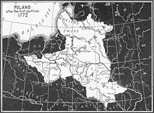 - 5 août ( du calendrier julien) : triple traité de Saint-Pétersbourg, qui entérine le premier partage de la Pologne[19]. La Prusse s’empare de la Prusse occidentale à l’exception de Gdansk et de Thorn, la Russie de la Lituanie à l’est du Dniepr et au nord de la Duna et l’Autriche de la Ruthénie et de la Galicie moins Cracovie.