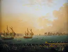 - 25 juin : une flotte franco-espagnole de 66 vaisseaux et de 14 frégates se réunit à la Corogne sous les ordres du comte d'Orvilliers[20]. Elle croise en Manche pendant trois mois sans être inquiétée, mais doit se retirer face à la tempête, la disette et l'épidémie (fin le 10 septembre)[23].