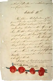 - Le traité de Paris met un terme à la guerre d'indépendance des États-Unis d'Amérique. Il est signé entre les représentants des treize colonies américaines et les représentants britanniques. Les Grands Lacs forment la frontière nord, le Mississippi la frontière occidentale. Les Britanniques renoncent à la vallée de l’Ohio.