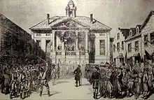 La cérémonie du serment de George Washington eut lieu sur le balcon de la Public House, plus tard appelé Federal Hall