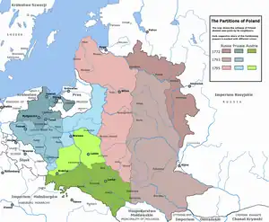 La Russie est la grande bénéficiaire des partages successifs de la Pologne puisqu’elle fait passer sous sa domination 45 % de la population polonaise, soit 5,4 millions d’habitants, dont 1,8 million de Polonais. Parmi ces derniers, 640 000 nobles occupent une situation dominante sur les plans économique, social et culturels, au-dessus de paysanneries lituanienne, biélorusse et ukrainienne. L’administration leur est souvent confiée, et ils garderont cette position jusqu’à l’insurrection de 1831.