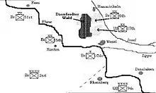 Toutefois, alors que l'opération commence à être planifiée, il apparaît très rapidement que le nombre d'appareils de transports est insuffisant pour transporter trois divisions entières. De ce fait, la 13e division est retirée de l'opération en raison de son inexpérience, la 17e division ayant déjà connu le feu lors de la bataille des Ardennes et la 6e division ayant participé à la bataille de Normandie[14]. Quoi qu'il en soit, l'opération Varsity constitue l'unique action aéroportée de la 17e division. Les deux divisions doivent être larguées derrière les lignes allemandes et reçoivent pour objectif d'atterrir autour de Wesel et de perturber les défenses adverses pour faciliter la progression de la deuxième armée britannique. Dans cette optique, les deux divisions sont larguées près de la ville d'Hamminkeln et reçoivent plusieurs missions. Elles doivent sécuriser la forêt de Diersfordter qui surplombe le Rhin et dont une route relie plusieurs villes entre elles. En outre, elles doivent s'emparer de plusieurs ponts au-dessus de la vallée du Vieil Yssel pour faciliter l'avance des Alliés. Enfin, la ville d'Hamminkelm elle-même doit être conquise[15]. Une fois ces différents buts remplis, les troupes aéroportées doivent consolider leurs positions et les défendre contre les Allemands, le temps que les troupes terrestres ne les rejoignent.