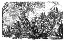 - 4 - 30 novembre : guerre du Sonderbund[33]. Le Sonderbund est battu, et l’Autriche, la France et la Prusse offrent leur médiation. La Diète adopte des mesures financières à l’encontre des cantons catholiques. Des gouvernements radicaux sont installés dans les cantons catholiques et les congrégations religieuses (y compris les jésuites) sont expulsées du pays.