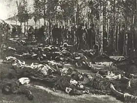 - 30 septembre : le parti Hentchak organise une manifestation près du grand Portail (Bab-i Ali) à Istanbul. Un incident entre des soldats turcs et des Arméniens dégénère en véritable massacre. Sous la pression des Européens, le sultan promet l’autonomie de l’Arménie occidentale (17 octobre)[47]. Les réfugiés arméniens (grégoriens et catholiques) affluent au Liban. Les massacres s’étendent à toute l’Anatolie orientale : Trébizonde (8 octobre), Erzurum (30 octobre), Ersindjian, Bitlis, Diarbékir, Malatya, Sivas, Mardin, Kayseri[50]... Les Arméniens résistent à Van en juin 1896, où les trois partis se sont unis (Armenakan, Hentchak et Dachnak), et à Zeïtoun, où les habitants s’emparent de la citadelle le 30 octobre[51]. Le Royaume-Uni demande alors des explications au Sultan, ce qui arrête temporairement les massacres. Les Turcs répondent qu’ils n’ont fait que réprimer une révolte arménienne. L’Allemagne et la Russie se contentent de cette explication et le Premier ministre britannique Salisbury n’ose pas agir seul.