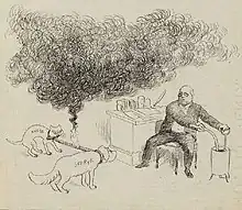 7 juin : indépendance de la Norvège. Caricature anonyme de 1905 montrant le Premier ministre suédois Boström tentant vainement d’éteindre les flammes