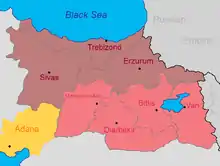- Juillet : 8e Assemblée générale du parti arménien Dachnak à Erzeroum. Au nom du loyalisme envers les pays où ils sont établis, les Arméniens refusent le projet allemand proposé par les Jeunes-Turcs d’organiser un soulèvement avec les Géorgiens et les Azéris contre les Russes en Transcaucasie, malgré la promesse de la création d’une Arménie autonome dans le cadre d’un État tampon transcaucasien placé sous contrôle turc[55]. En refusant, le Dachnak est condamné à combattre du côté russe.