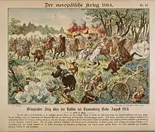 Un officier allemand tire sur les forces britanniques du Nigeria à Garoua pendant la campagne du Kamerun. Les troupes britanniques attaquent Garoua une première fois le mais doivent battre en retraite le 31[4].
