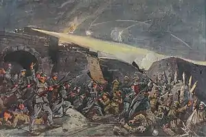 - 24 février : après l’arrêt de leur offensive aux lacs Mazures[68], les Allemands s’emparent de Przasnysz au nord de Varsovie. La ville est reprise par les Russes le 27 février et les Allemands se retirent, laissant 10 000 prisonniers[72].