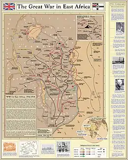 Les opérations en Afrique de l'Est. À partir du mois de mars, les Alliés mènent une offensive contre l’Afrique orientale allemande par le nord-est (Britanniques et Sud-Africains), l’ouest (Belges) et le sud-ouest (Britanniques). Les Allemands se réfugient dans le sud, puis au Mozambique à partir de l’automne 1917, pour y mener la guérilla. Le général von Lettow-Vorbeck résiste jusqu’à la fin de la guerre avec des forces réduites, il a réussi à mobiliser contre lui 150 000 soldats alliés.