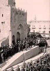 11 décembre : Allenby entre à Jérusalem par la porte de Jaffa. Georges-Picot, Lawrence et le général Gilbert Clayton sont derrière lui[58].