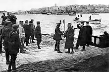 - accords préliminaires de Poti ; l’Allemagne prend la Géorgie sous sa protection en échange du droit d’utiliser les chemins de fer géorgiens pour le transport de ses troupes. Un traité définitif est signé à Berlin le 15 août[53]. Un corps expéditionnaire allemand venant de Crimée sous le commandement du Major Général Kress von Kressenstein débarque le 8 juin à Poti et rejoint Tbilissi le 10 juin[54].