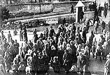 - Hyper-inflation : un dollar s’échange 3,7 millions de mark (126 millions le , 4 200 milliards le )[58]. Les valeurs inscrites sur les billets sont modifiées plusieurs fois par jour en fonction des cours ainsi que les étiquettes des marchandises. Les ouvriers rémunérés à la journée, vont au travail avec des valises afin de pouvoir emporter la masse de billets nécessaires au règlement de leur paie.
