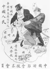 Affiche de propagande du Kuomintang, montrant un impérialiste étranger et un seigneur de la guerre torturant un patriote chinois après le Mouvement du 30-Mai.