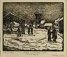 Linogravure du camp d'internement de Compiègne créée par l'artiste Jacques Gotko en 1942.