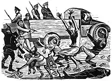 - 24 mars : Lord Mountbatten devient vice-roi des Indes[41]. Il est envoyé en Inde pour négocier l’indépendance avec Gandhi, Nehru et Jinnah. Ces négociations aboutissent le 3 juin à la partition de l’Inde et du Pakistan, tandis que les affrontements deviennent endémiques au Pendjab. En échange de la création d’un État musulman séparé, Mountbatten doit accepter la revendication du Congrès de diviser le Pendjab et le Bengale. Les pouvoirs sont transférés au Parti du Congrès et à la Ligue musulmane. Les autres partis hindous sont ignorés[42].