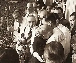Campagne électorale en Argentine. Lors du Cabildo ouvert du , la foule demande à Eva Perón d'être candidate à la vice-présidence. Elle refuse le 31 août[19].