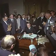 7 août : le président Johnson signe la résolution du golfe du Tonkin.