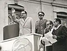 - 27 octobre : le Congo, sous la férule de Mobutu, devient le Zaïre (déformation par les Portugais du mot kikongo Nzadi « le fleuve »). Léopoldville étant renommée Kinshasa depuis 1966[21]. Début de la zaïrianisation.